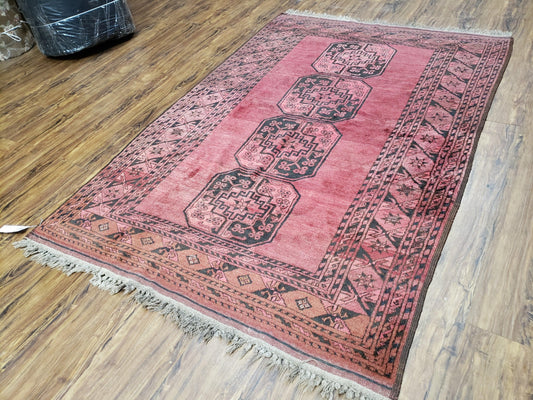 Antique Bukhara Area Rug, Vintage Afghan Bokhara Bashir Rug, 4x6 Hand-Knotted Oriental Carpet, Red & Black Wool Rug, 4' x 5'9