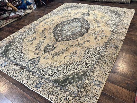 Antique Persian Tabriz Rug 9x12, Floral Medallion Rug, Hand-Knotted Wool Oriental Carpet, Room Sized Handmade Rug, 9 x 12 Vintage Farmhouse Rug
