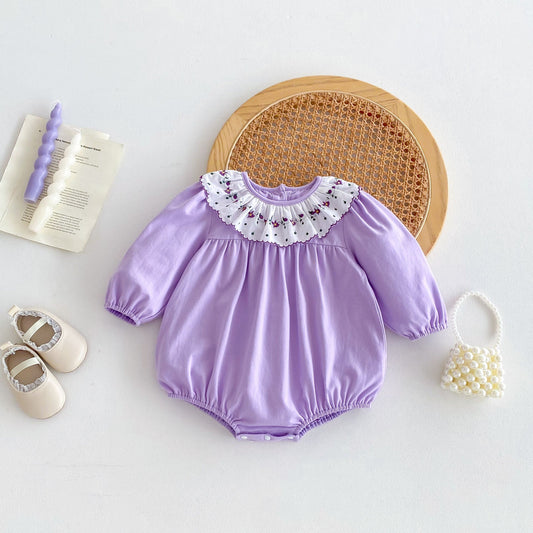 Autumn Arrival Baby Girls Long Sleeves Floral Print Collar Purple Onesies