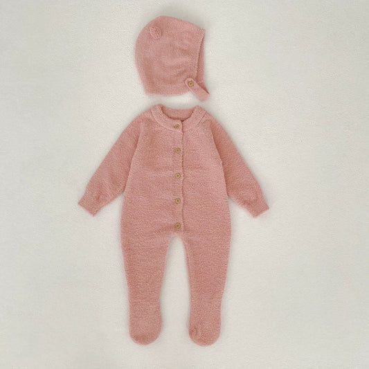 Autumn and Winter Arrival Unisex Baby’s Solid Color Crew Neck Fluffy Rompers
