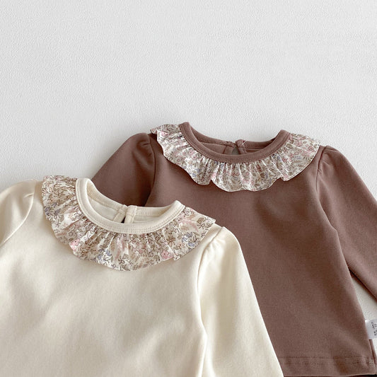 Autumn Arrival Baby Girls Flowers Pattern Collar Long Sleeves Top