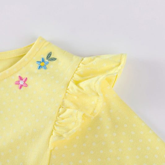 Autumn Arrival Kids Girls Flowers Cartoon Print Crew Neck Long Sleeves Color Patchwork Shirt