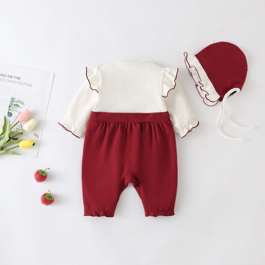 Baby Girl Lettuce Trim Design Big Bow Long Sleeve Jumpsuit