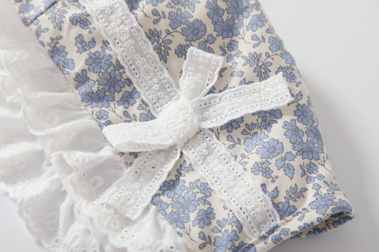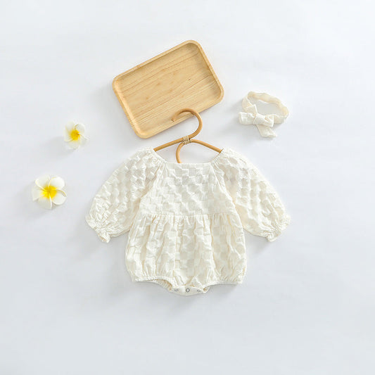 Baby Girl Solid Color Hollow Carved Pattern Ruffle Neck Onesies