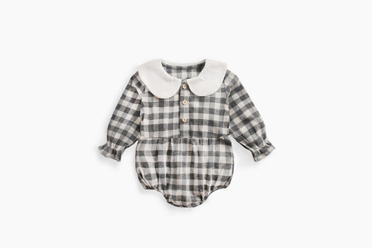 Baby Girl Plaid Pattern Doll Collar Design Long Sleeve Onesies With Buttons