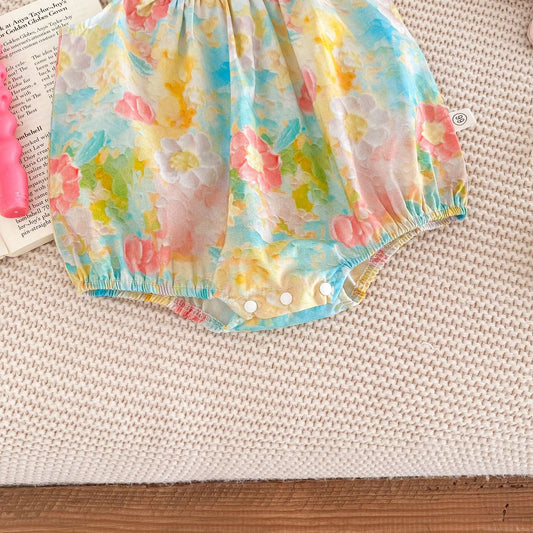 Baby Girls Colorful Floral Design Strap Sleeveless Thin Onesies