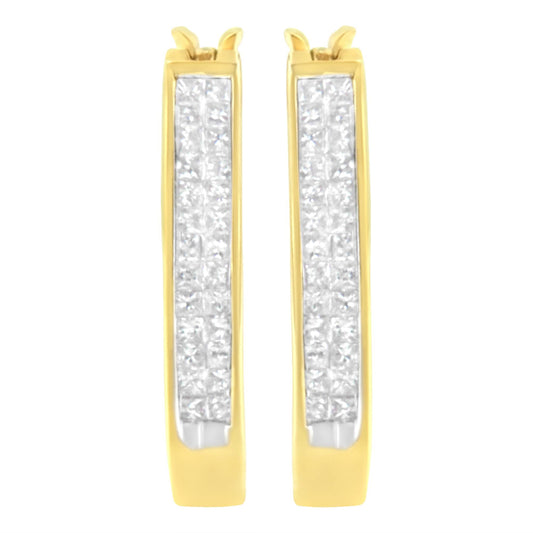 10K Yellow Gold 1/2 Cttw Invisible Set Princess-cut Diamond Hoop Earrings (H-I Color, SI2-I1 Clarity)