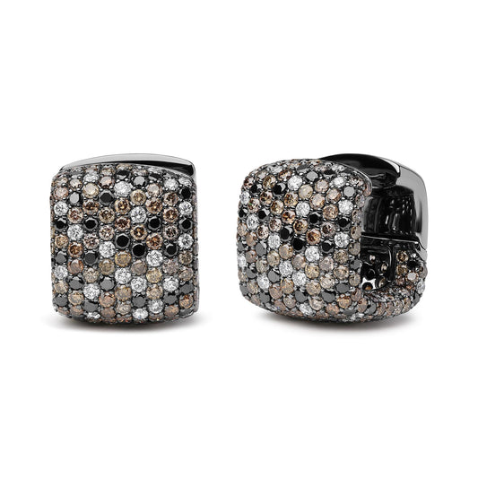 Black Rhodium Plated 18K White Gold 12 5/8 Cttw Multi Color Diamond Square Domed Huggie Hoop Earrings (Brown, Black, G-H Color, SI1-SI2 Clarity)