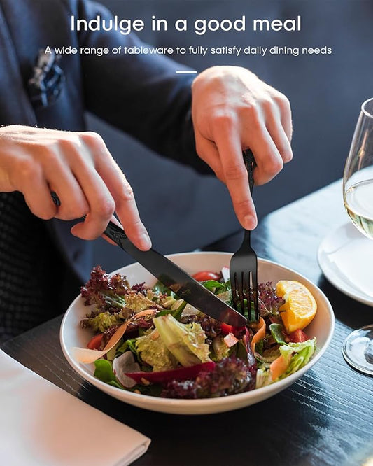 Black Silverware Set, Ollex 40-piece Retro Royal Black Silverware Set for 8 with Stainless Fork Spoons Knives Vintage Flatware Set for Kitchen Party Utensils Set, Dishwasher Safe