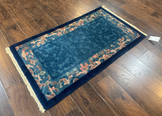 Blue Chinese Wool Rug 2.5 x 4, Peking Rug, Fete Rug, Semi Antique Chinese Carpet