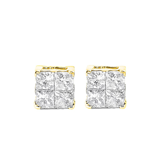 10K Yellow Gold Plated .925 Sterling Silver 1.0 Cttw Princess-Cut Diamond Composite Multi Stone Stud Earrings (J-K Color, SI2-I1 Clarity)