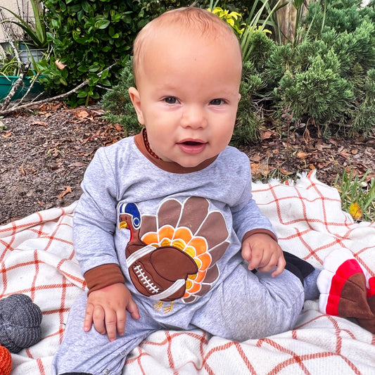 Boys Long Sleeve Football Thanksgiving Turkey Baby Toddler Romper