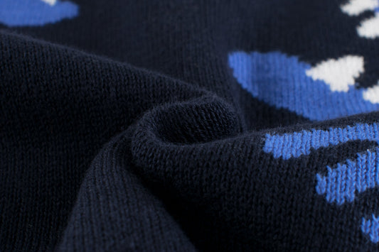 Boys Multi Color Contrast Dinosaur Pattern Round Collar Knit Sweater Outfit