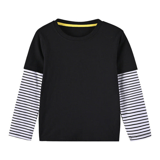 Boys And Girls Striped Sleeve Patchwork O-Neck Fake 2-Pieces Hoodie In Autumn