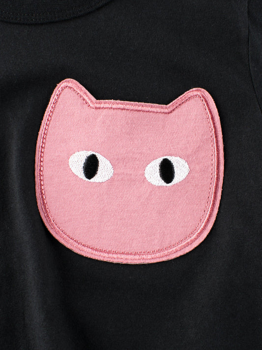 Cat Face Cartoon Pattern Girls T-Shirt In European And American Style For Summer