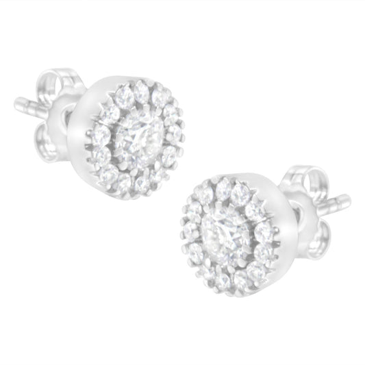 14k White Gold 1 cttw Diamond Halo Stud Earrings (I-J Clarity, I1-I2 Color)