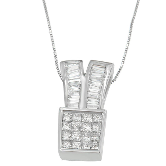 14K White Gold 1 1/3 cttw Princess and Baguette Cut Diamond Sparkling Shapes Pendant Necklace (H-I, SI1-SI2)