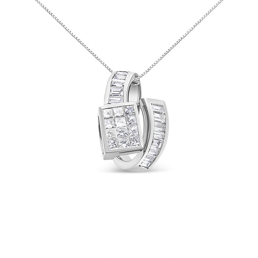 14K White Gold 2 cttw Princess and Baguette Cut Diamond Double Loop Pendant Necklace (G-H, VS1-VS2)