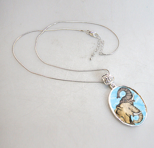 Elephant Trunks Silver Plated Mother of Pearl Jewelry Necklace - 44017