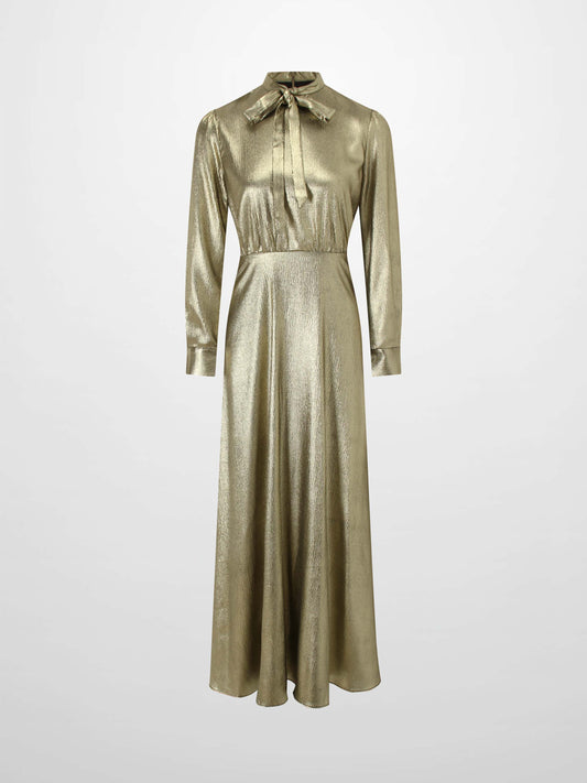 Embroidery Bead Tied Shoulder Mesh A-line Long Dress