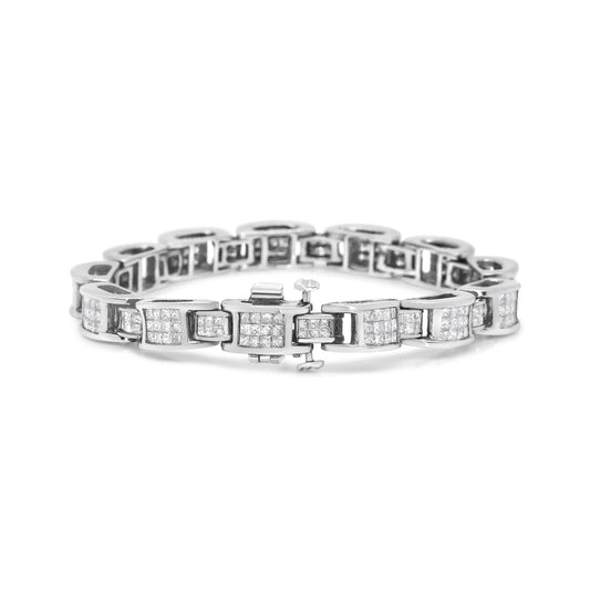 14K White Gold 7.0 Cttw Princess Cut Diamond 7" Alternating Vertical and Horizontal Rectangular Link Tennis Bracelet (H-I Color, SI2-I1 Clarity)