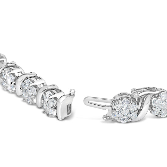 14K White Gold 5 1/4 cttw Diamond S-Link Floral Cluster Tennis Bracelet (I-J Clarity, SI2-I1 Color) - Size 7"