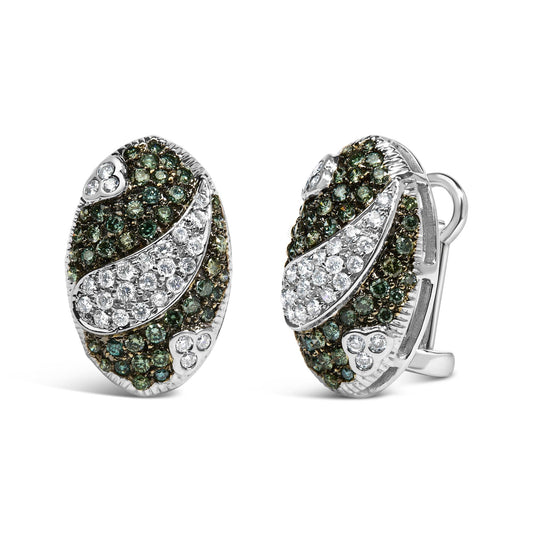 14K White Gold 2.00 Cttw White and Treated Blue Diamond Oval Shield Omega Back Earrings (H-I Color, SI1-SI2 Clarity)
