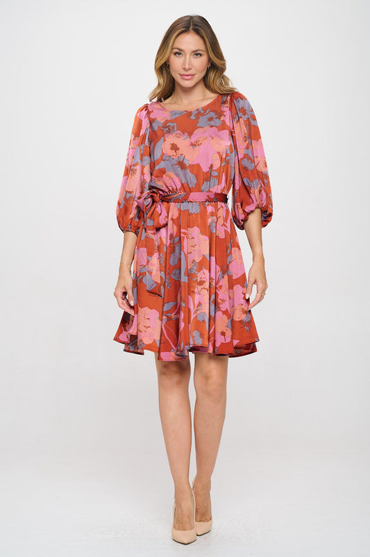 Floral Print V neck Collared Dress with Smock Waist Detail