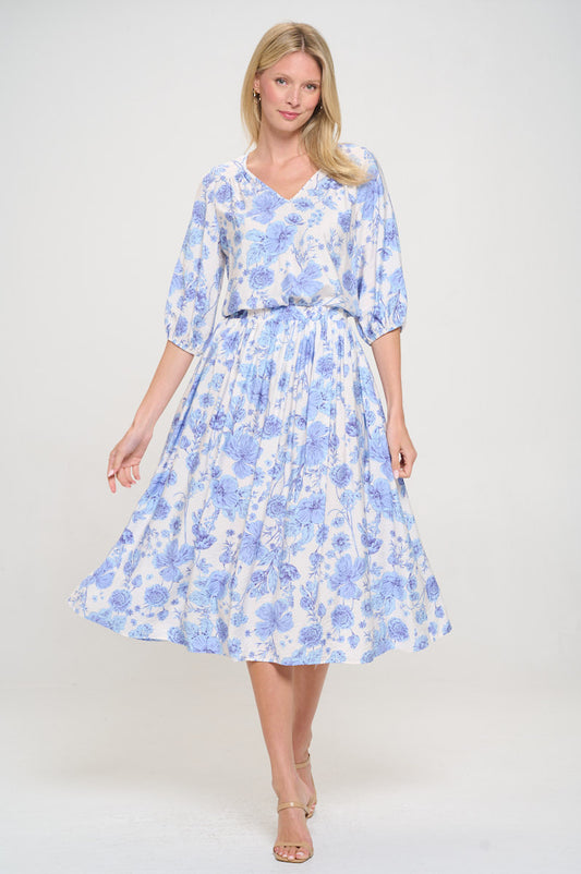 Floral Print Midi Dress with Smock Back Detail and Pockets