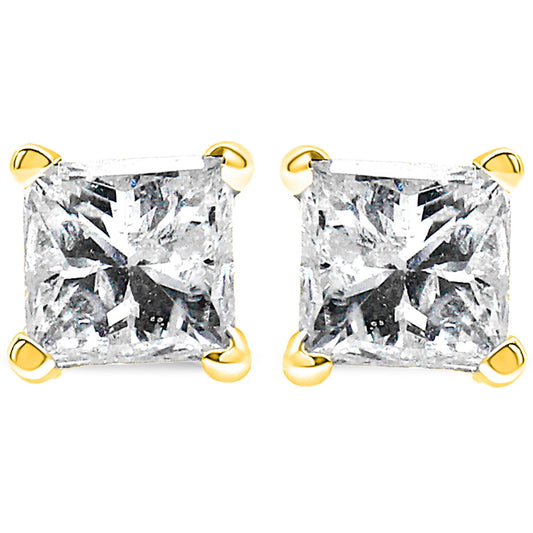 14K Yellow Gold 1/4 Cttw Princess-Cut Square Near Colorless Diamond Classic 4-Prong Solitaire Stud Earrings (H-I Color, I1-I2 Clarity)