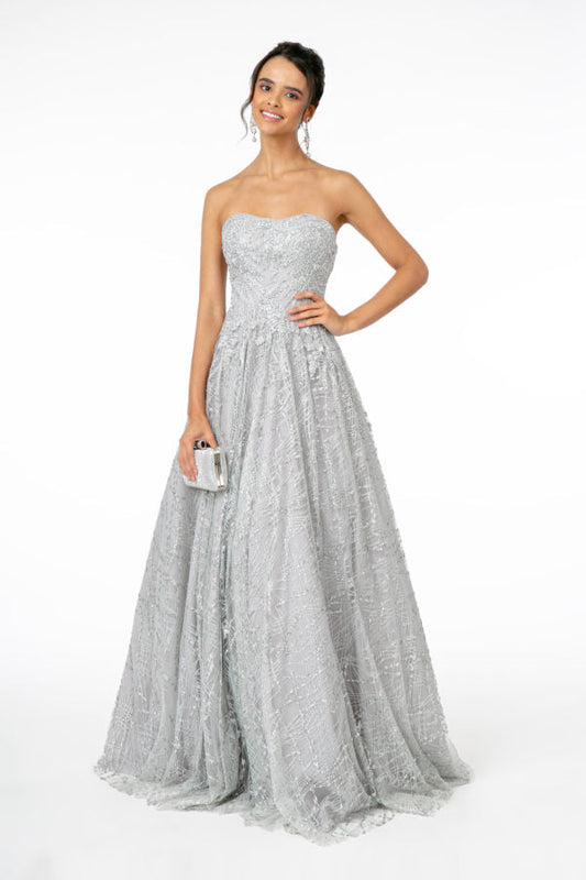 Glitter Illusion Sweetheart Sheer Bodice Mesh A-line Long Dress