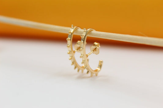 Gold Spikey Stud Oval Earrings For 18K Gold Filled
