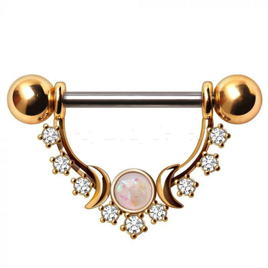 Gold Plated Jeweled Synthetic Opal Captive Bead Ring Nipple Jewelry