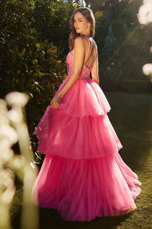 High Neck Beaded Top and Sheer Back Accented with Chiffon Tail