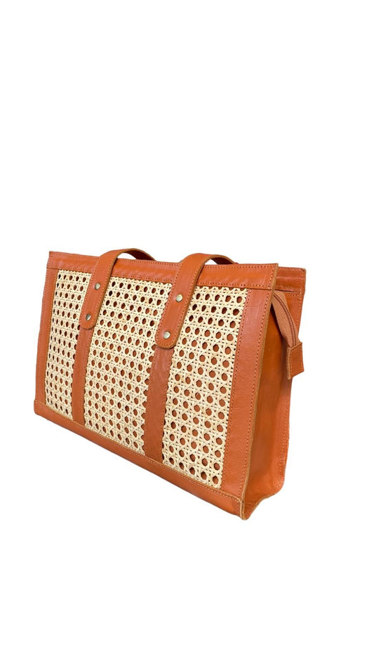 Leana Brown Bali Handmade Leather Rattan Webbing HandBag