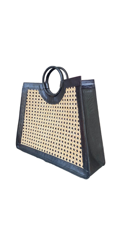Lena Black Bali Handmade Leather Rattan Webbing HandBag