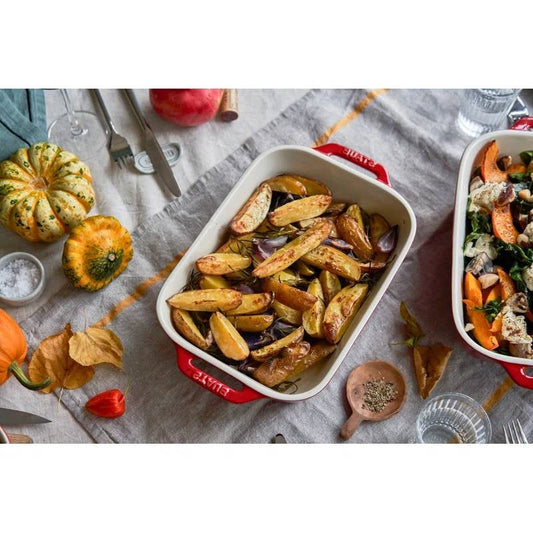 2 Piece Ceramic Stoneware Baking Dish Set in Cherry Red / Ivory