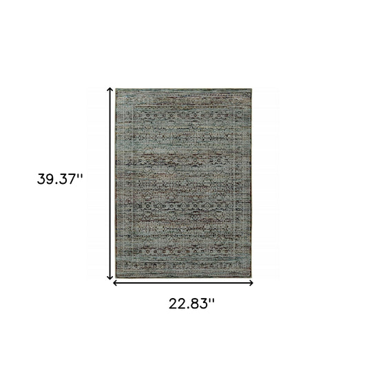 2' X 3' Blue Green Oriental Power Loom Area Rug