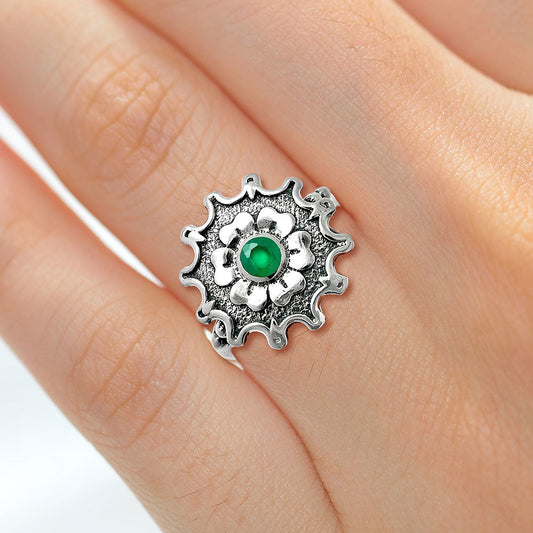 Natural Gemstones Round Shape 925 Silver Ring Size 5-9 Jewelry AGR1032 R-1072