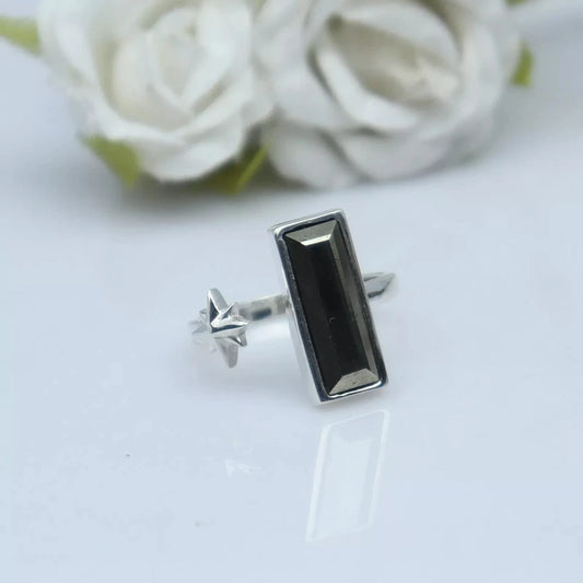 Natural Pyrite Adjustable Ring In Sterling Silver With Star For Christmas Gift