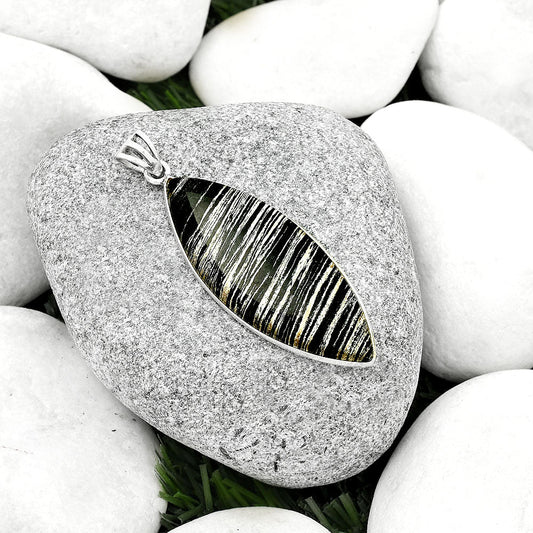 Natural Silver Obsidian & Black Onyx Pendant P-1434 SDP143374