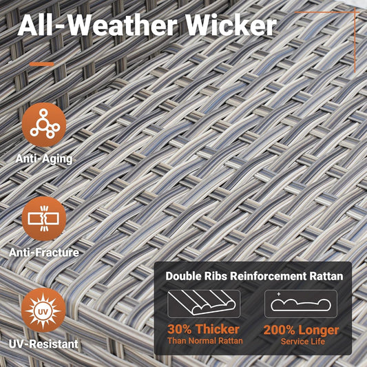Outdoor 5 Piece Patio Furniture with Fire Pit Table,Wicker Coversation Set with Swivel Rocking Chair,Comfy Sectional Deep Sofa for outside Porch Balcony Backyard Pool,Dark Grey