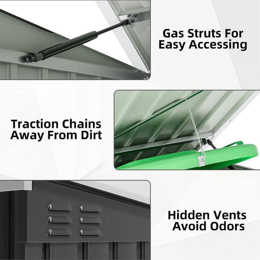 Outdoor Black Galvanized Steel Garbage Bin Storage Shed - Holds 3 Trash Cans