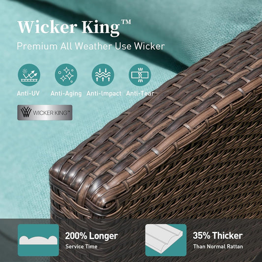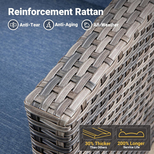 Patio Furniture Set, 5 Pieces Outdoor Wicker Rattan Sofa Couch with Chairs, Ottomans and Comfy Cushions, All Weather High Back Conversation Set Garden Backyard, Denim Blue