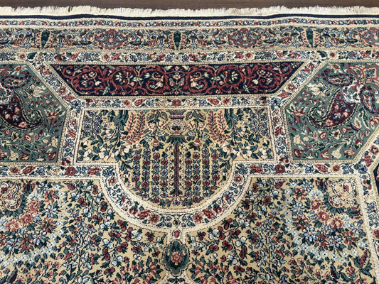 Persian Rug 8x11, Belgium Power Loomed Rug, Kirman Lavar Floral Design, Vintage Rug