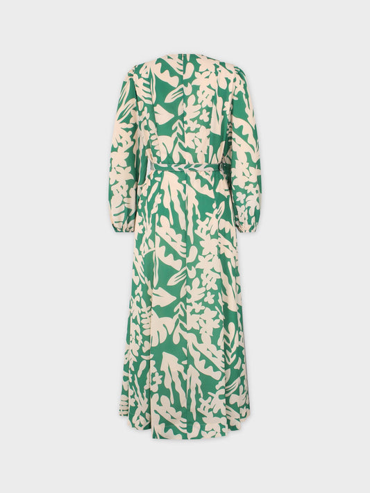Printed Surplice Balloon Sleeve Dress