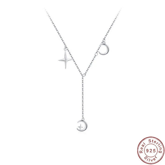 Radiant Stars and Moon S925 Sterling Silver Necklace Clavicular Chain For Women