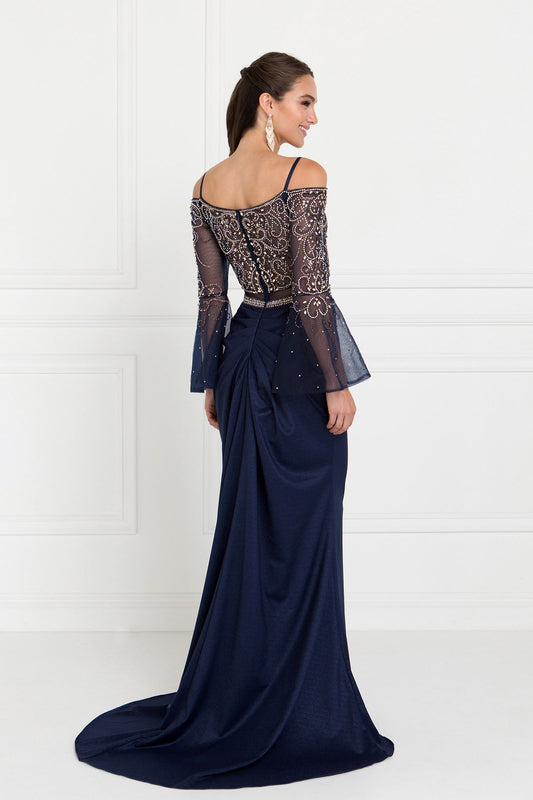Rome Jersey Mermaid Long Dress with Embroidery and Jewels