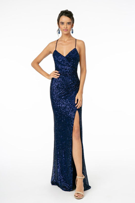 Ruched Waist Sweetheart Sequin Fitted Dress w/ Lace Up Back
