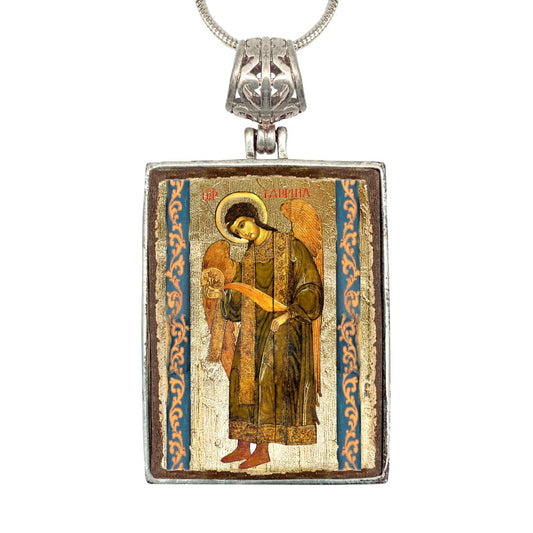 Saint Gabriel Archangel Religious Jewelry Silver Plated Necklace, Gold-Plated Wooden Cabochon - Christian Icon - Inspirational Icon Decor - 43041R
